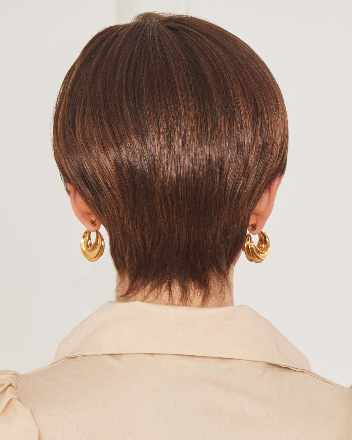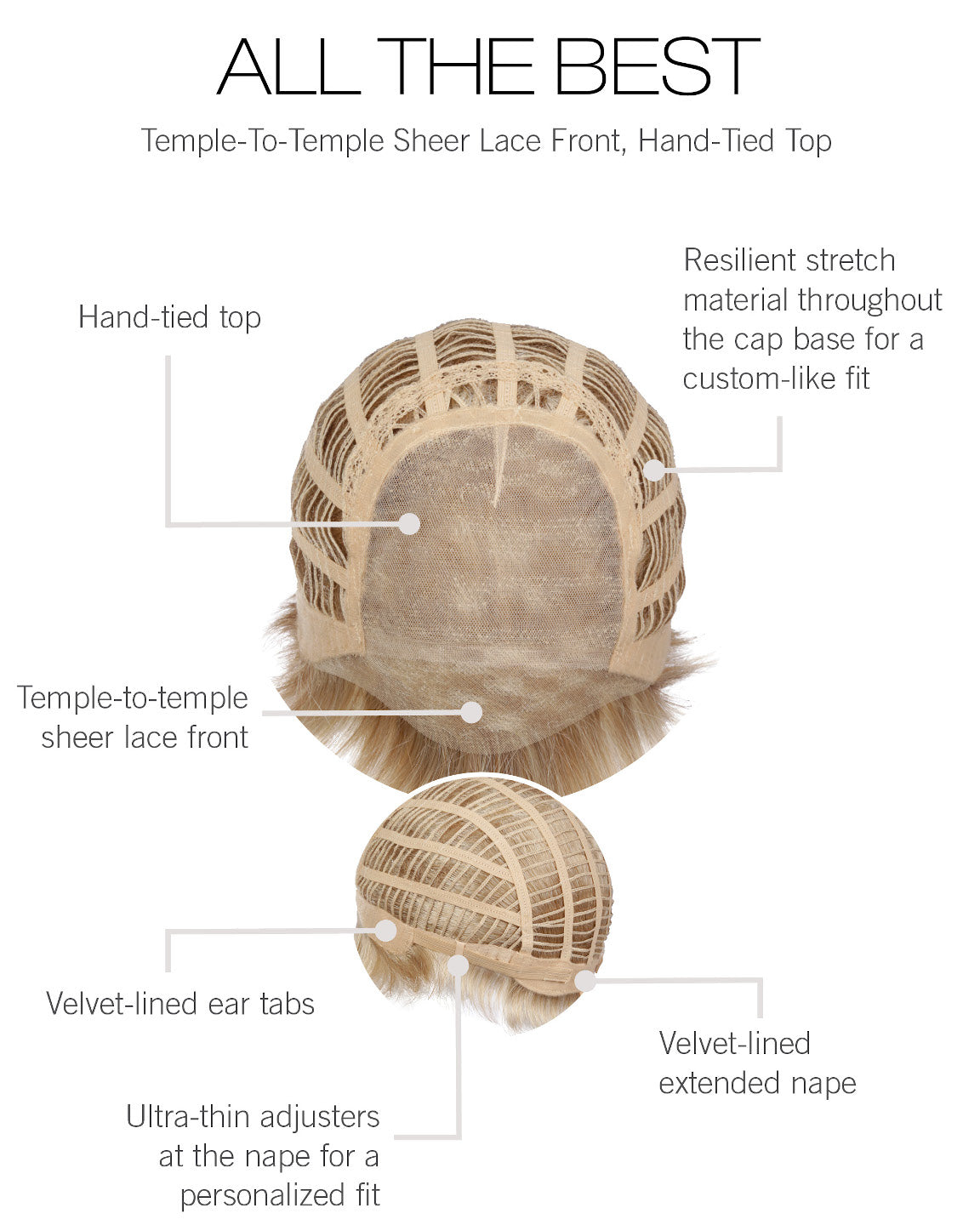 This ultra-light sculpted short style is a modern classic with all the best features. A hand-tied top to let you part where you like. The natural look of an extended lace front that extends all the way to the ear tabs. Low-density, airy movement. Side-sweeping bangs to flatter and frame the face. A neck-hugging nape. For polished, tailored style that’s ready to go… you deserve all the best.