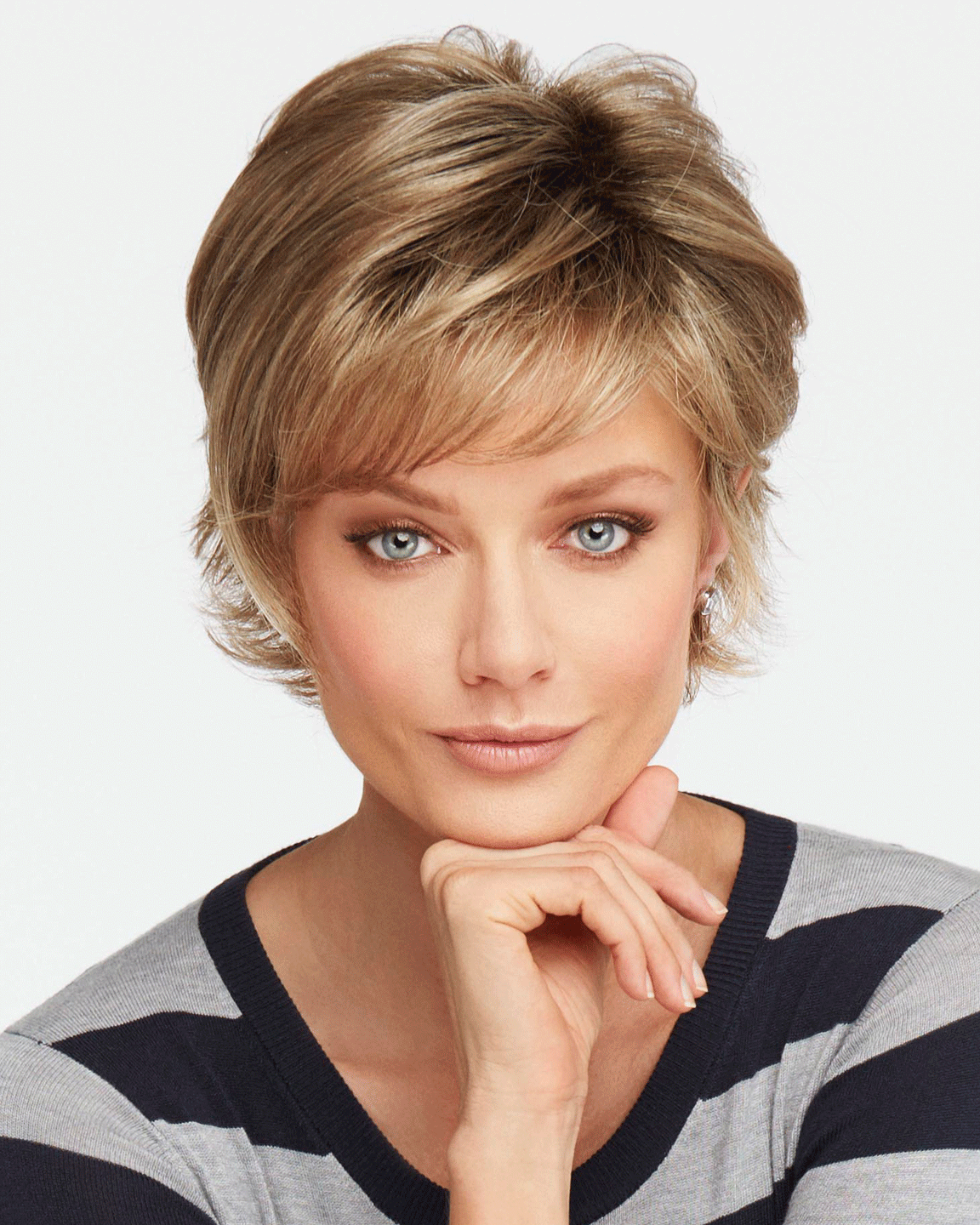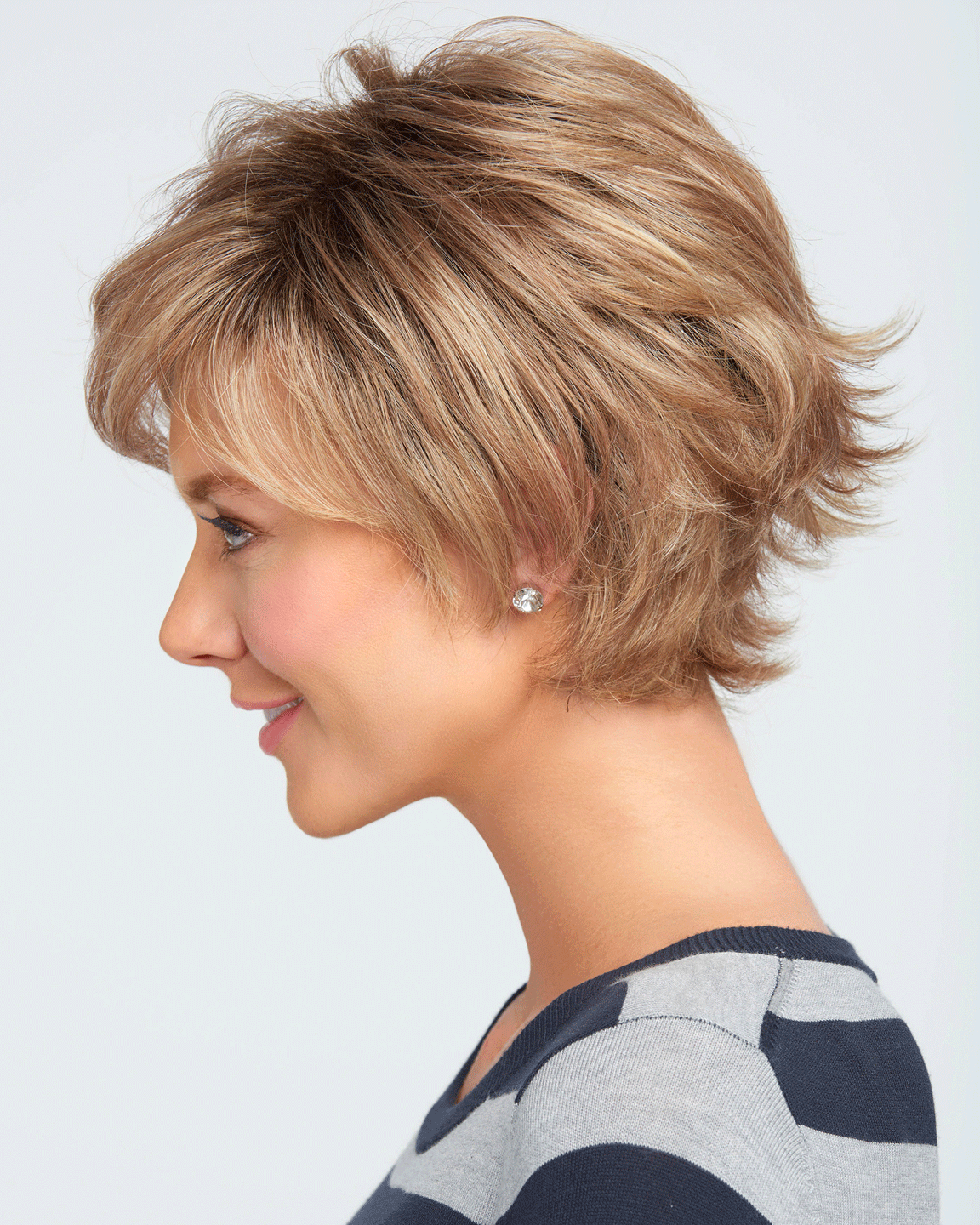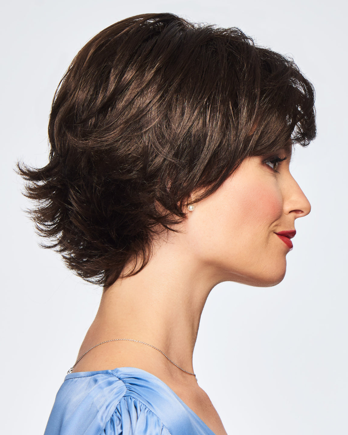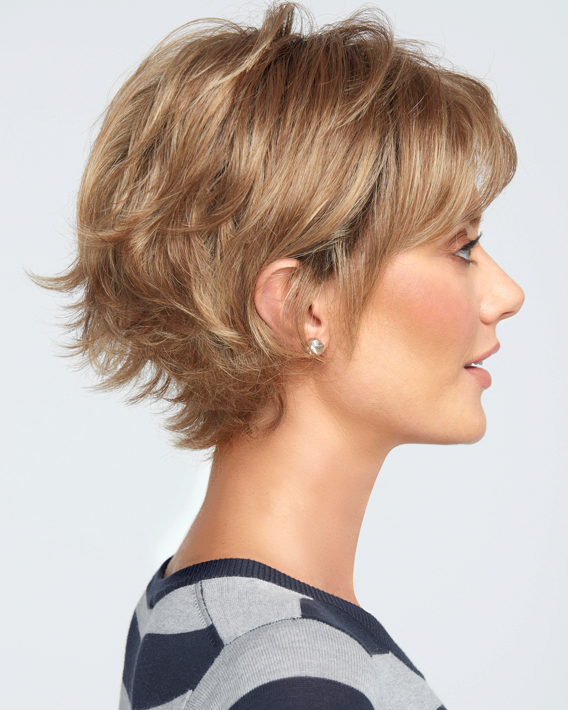 Long sweeping layers on the top and sides blend with short textured layers in back for a no-fuss contemporary silhouette, and a boost to your spirit.