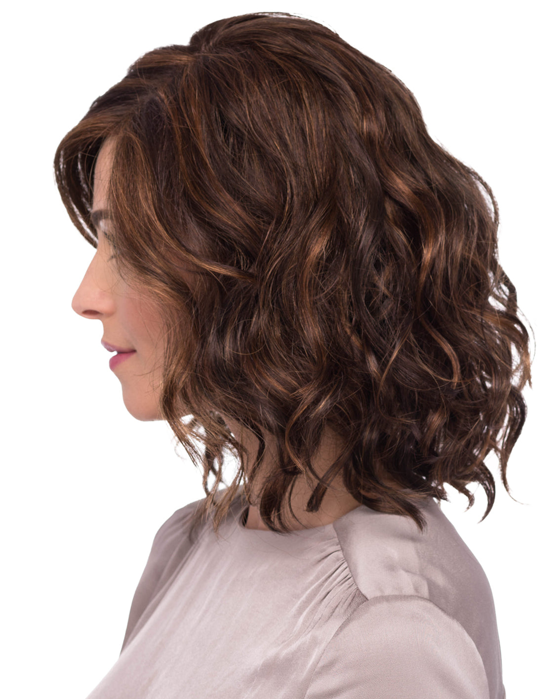 Brooklyn by Estetica Designs. Brooklyn is a loose, wavy, mid-length bob that looks and feels wonderfully natural. Her lace front creates the most natural hairline, while her monofilament top allows the hair to move freely in any direction.