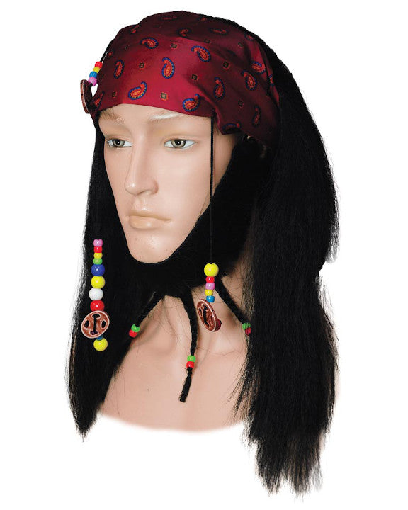 Buccaneer Johnny Depp Bandana Jack Sparrow Pirates. Plunder the Caribbean in this ornate wig and goatee set, with braids, beads, and trinkets. LW329BK