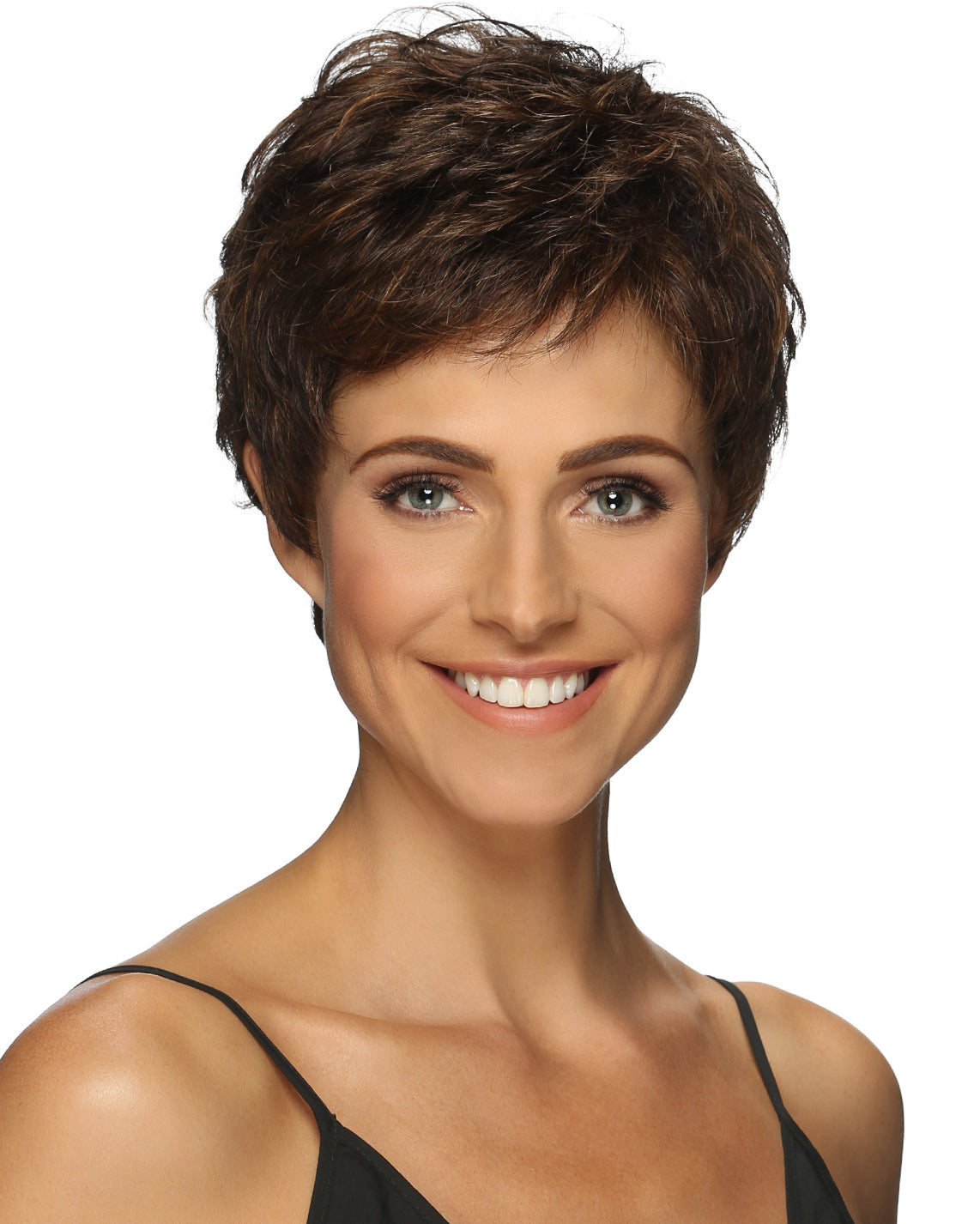 Look no further for the perfect pixie! Charlee by Estetica Designs is a modern, full-bodied pixie with lots of beautiful curls and just the right amount of wispy bangs. Simply sophisticated and effortlessly chic, Charlee is a dream come true.