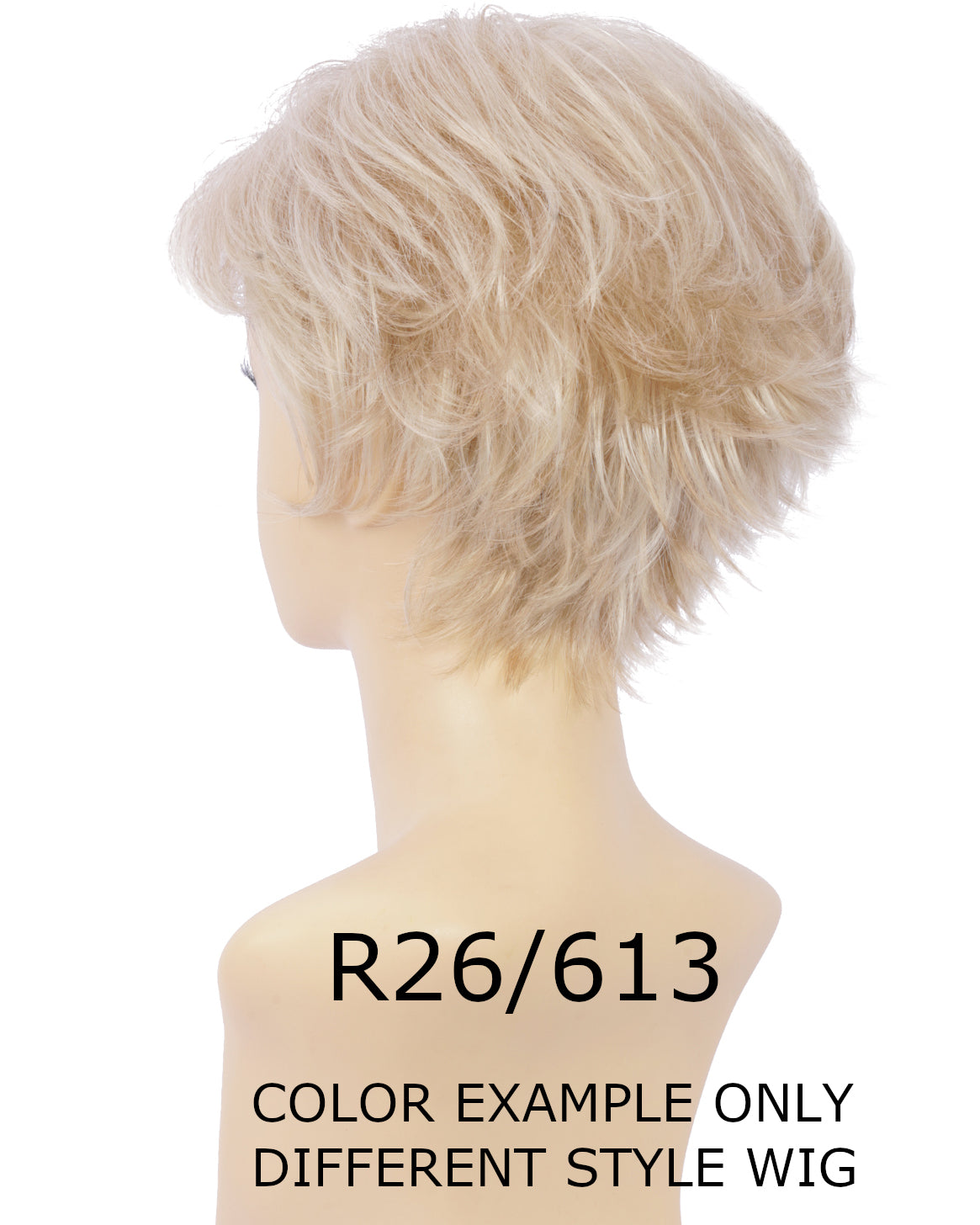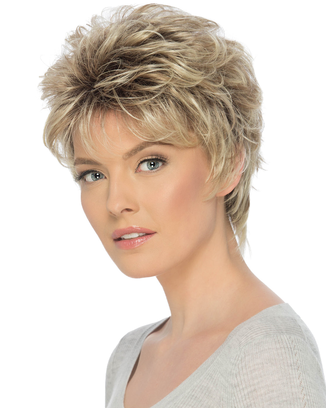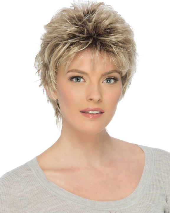 Christa by Estetica Designs is made with loose in and out curls, cut in a slight shag style.