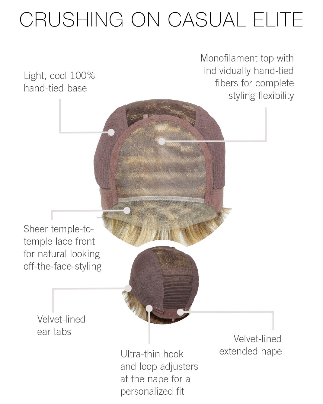 Crushing on Casual Elite by Raquel Welch. We’ve stoked the fire on your not-so-secret attraction, adding a 100% hand-tied capto really kick the romance into high gear. A low-density, even lighter weight look to fawn over with the same monofilament top you’ve come to love