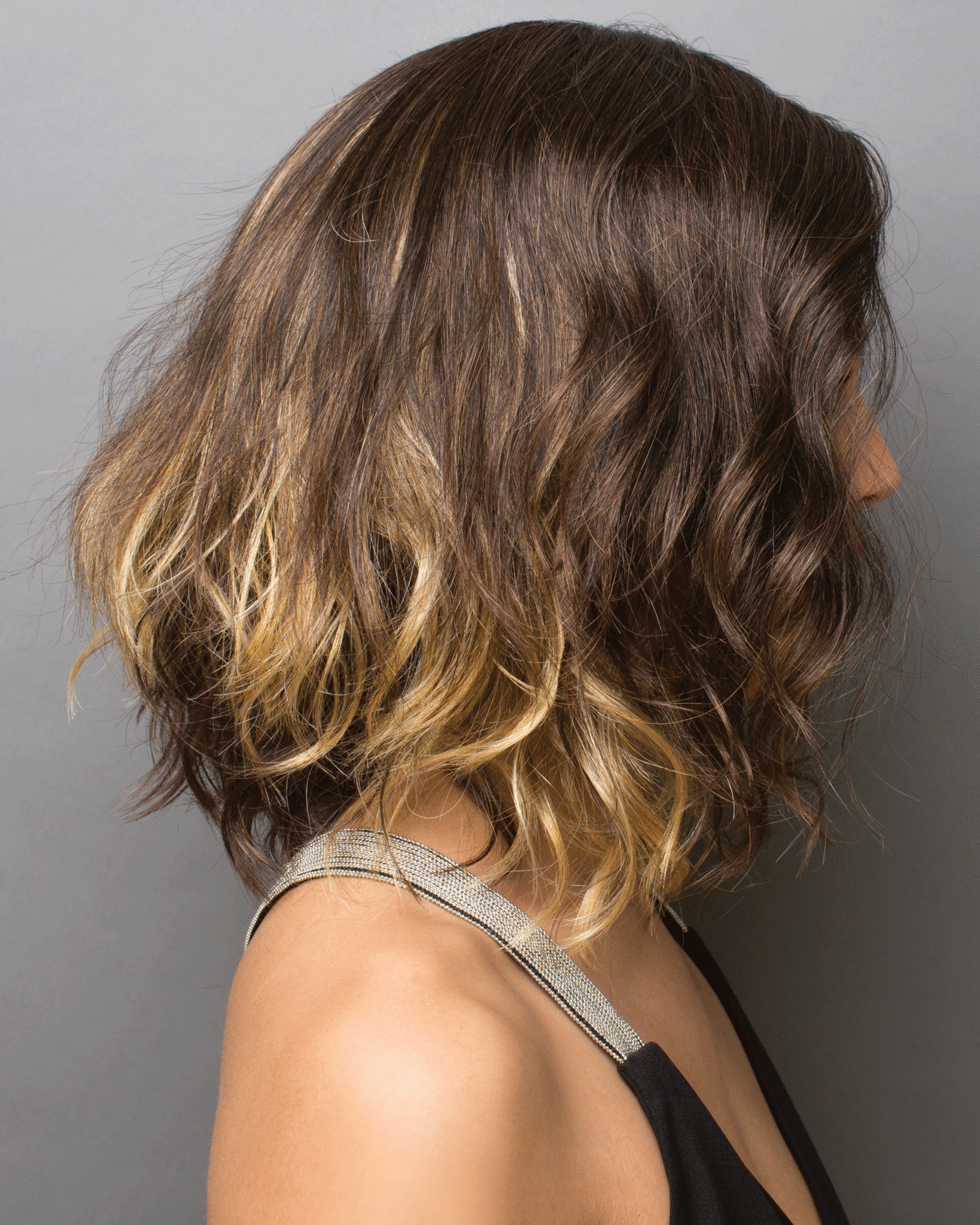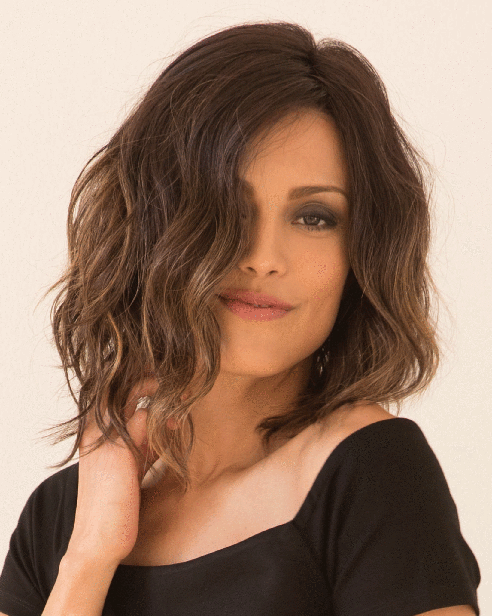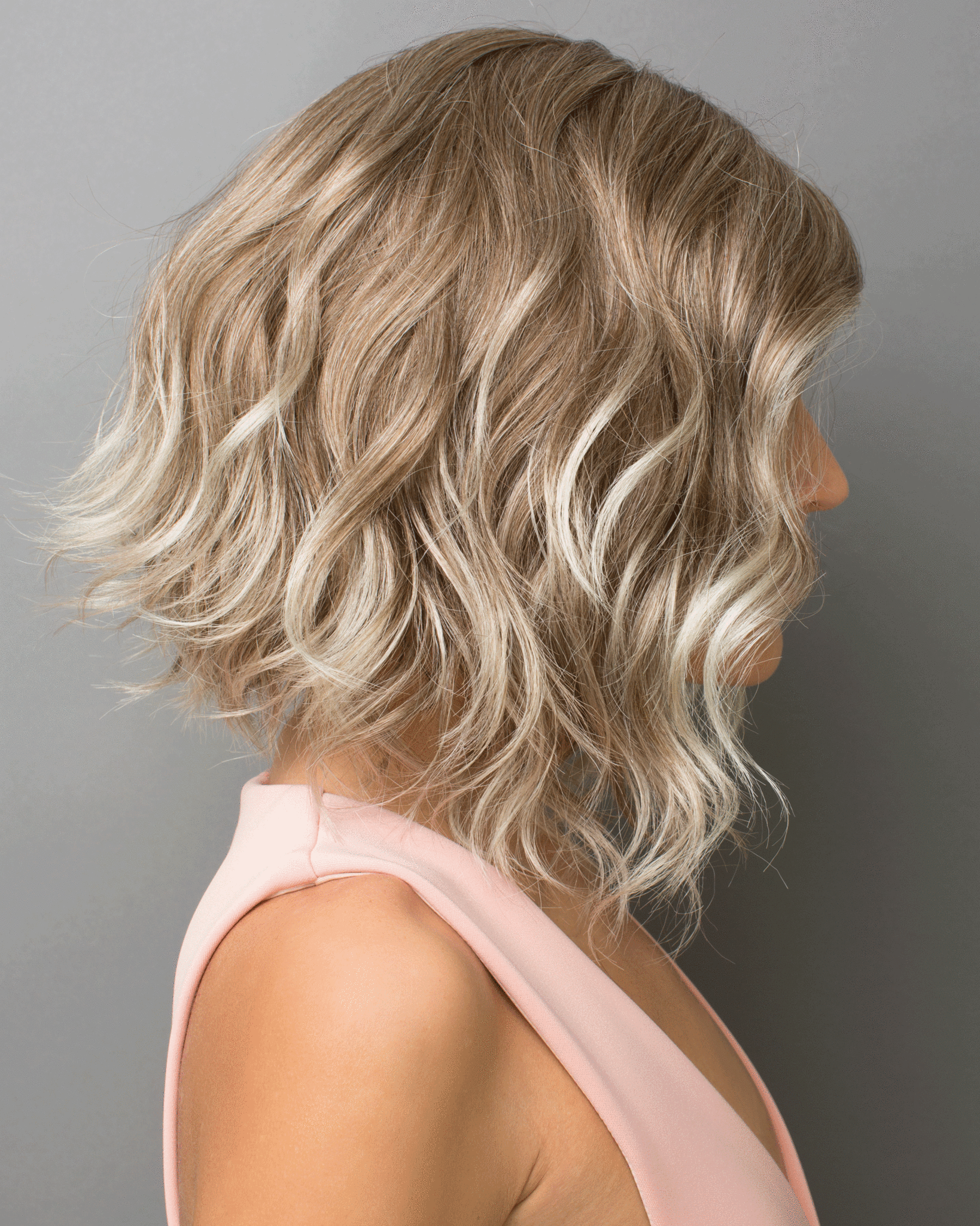 Evanna by Rene of Paris. A chic tapered look with effortless elegance. This wavy ready-to-wear wig is a trendy bob with a salon finish beach wave curls that fall shoulder length. Its lace front will give you a natural look with the partial monofilament base. Evanna cap construction has adjustable tabs in the back nape area to allow a more comfortable fit. The result is a comfortable fit with a natural look that is both fashionable and easy to wear