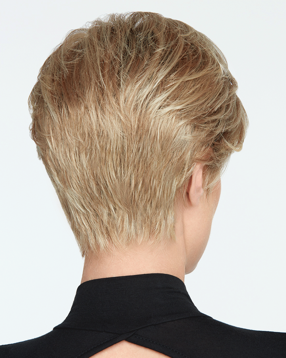 Go For It by Raquel Welch. The classic “boy” cut gets a complete overhaul with the addition of longer layered areas at the front and sides for more styling options. Thanks to the Sheer Indulgence™ temple-to-temple lace front, the piecey front lengths can be styled off- the- face. The longer, textured sides can be worn swept forward for a voluminous look or gently finger-styled behind the ears for a more streamlined effect. A gently sculpted and textured nape adds to the sophisticated look of this style.