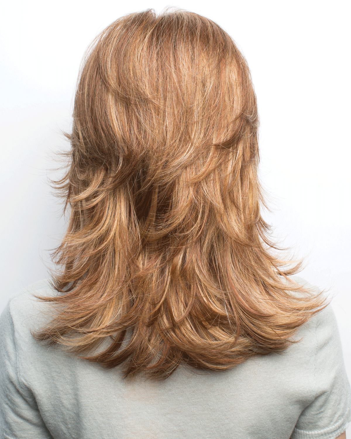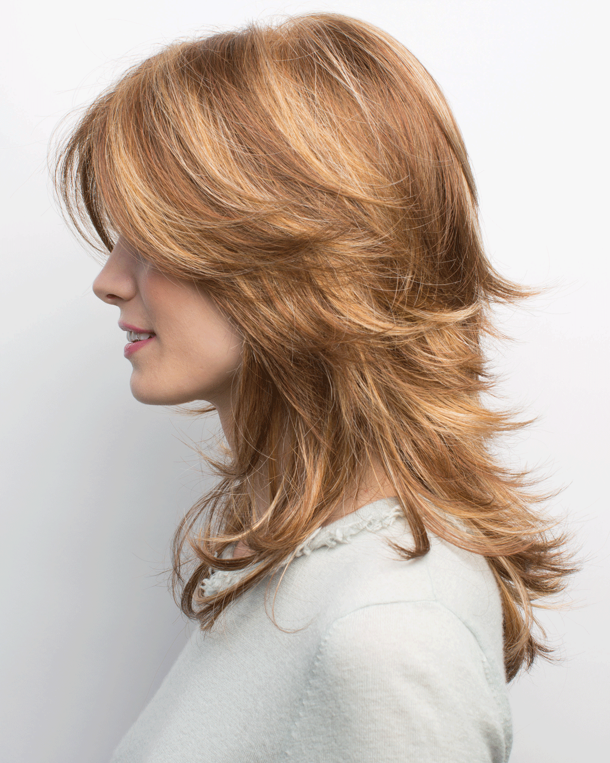 Kelly by Amore with multiple layers and long fringe worn swept to each side of the face is a fresh, contemporary look. Amore Kelly wigs feature a double monofilament cap with a hand tied top construction and machine wefting along the sides and back, while its base layer at the crown gives the illusion of hair growing from the scalp for a more natural looking appearance. The Kelly wig offers you a selection of both traditional colors and hybrant shades with their multi-dimensional highlighted tones.