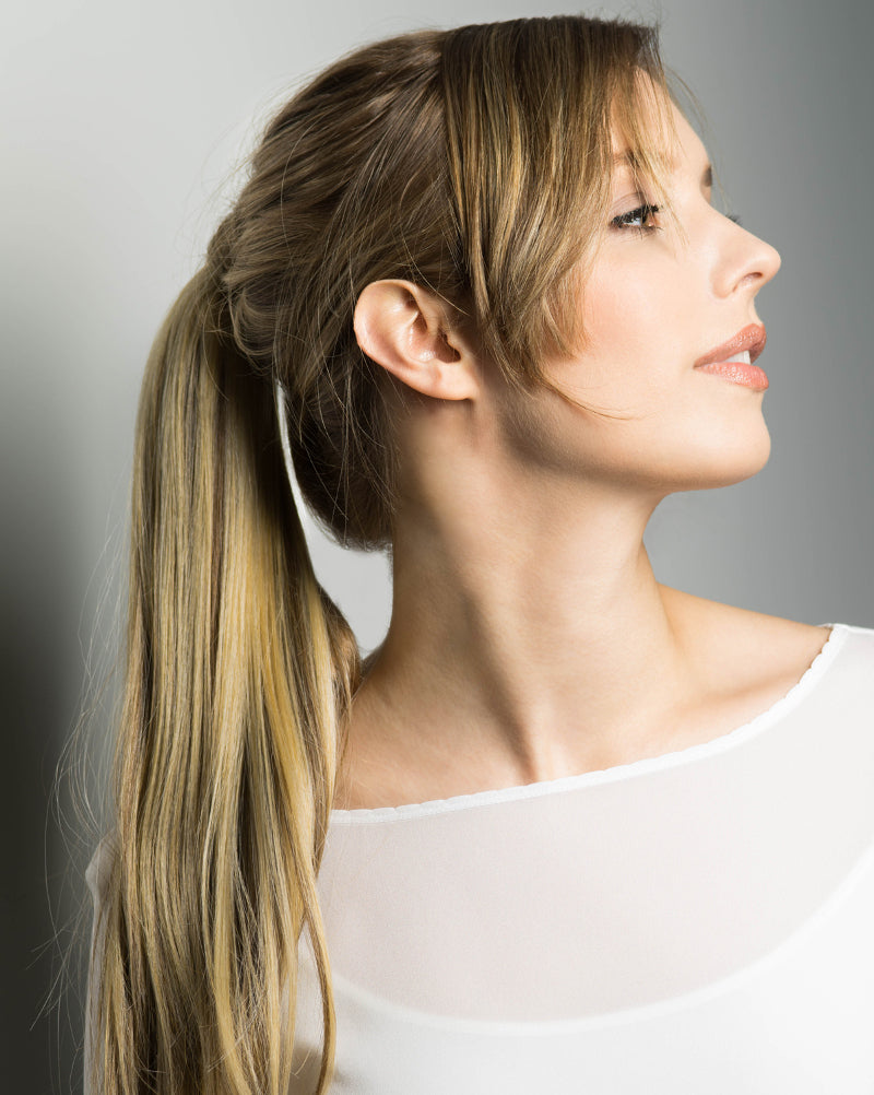 The 14" Pony Wrap by Estetica Designs is a beautiful extension to any ponytail. Made with heat resistant fibers. Just wrap around and clip.
