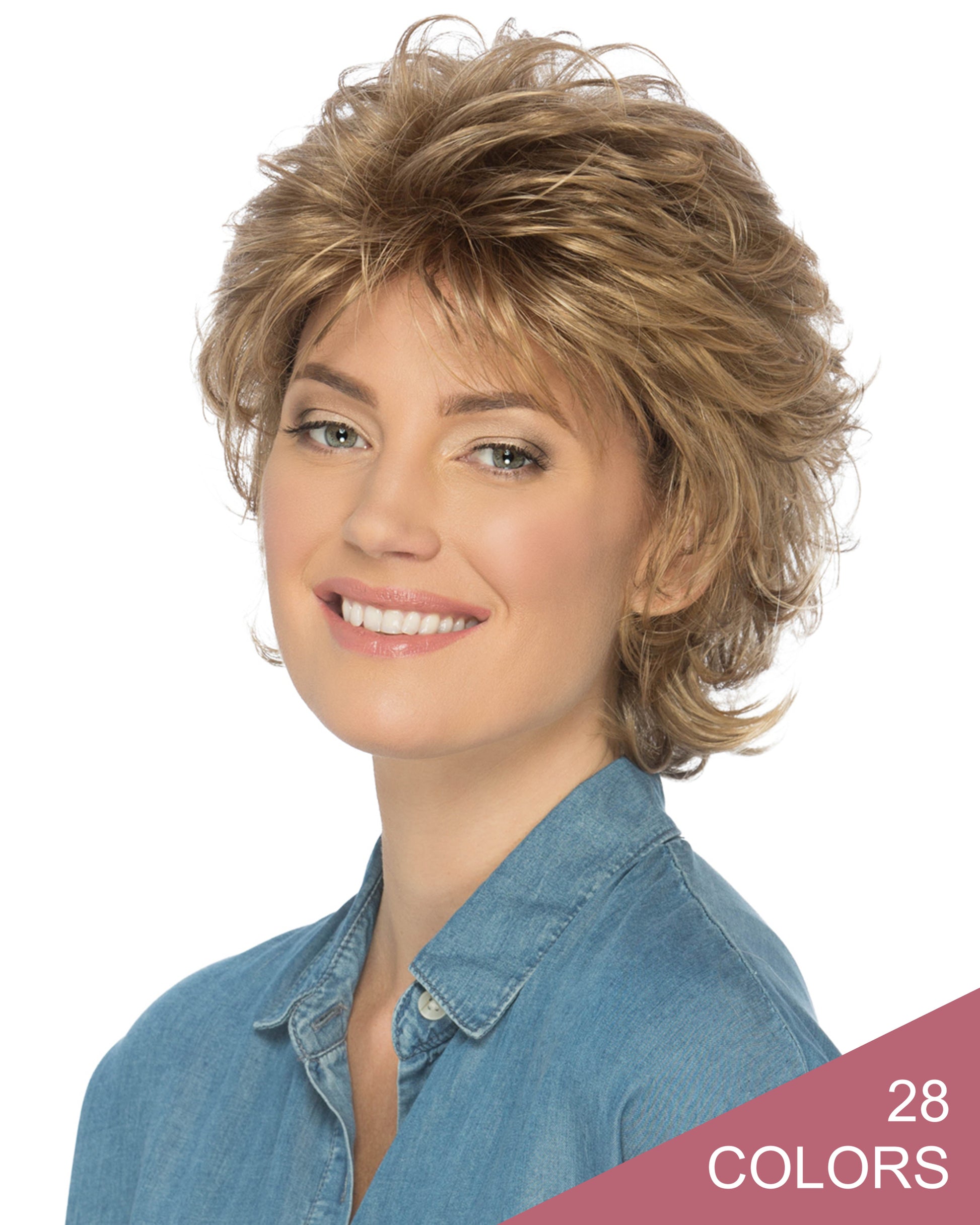 Shelby by Estetica Designs has loose curls that give this middle length shag some lift.