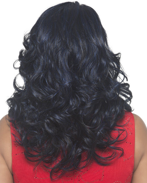 Silver V by Vivica Fox is an 18 inch layered style with roller set as a base, spiral curl on the side, and feathered bang in the front. Pure stretch cap stretches throughout the entire perimeter inside which lets you wear it comfortably all day without causing unwanted headache. Its roller set curl creates a mass of curly hair while spiral curls on the sides make it fun and versatile when it comes down to style. New futura fiber helps keep the curl longer and bouncier. Wherever you go, it is ready to rock and roll.