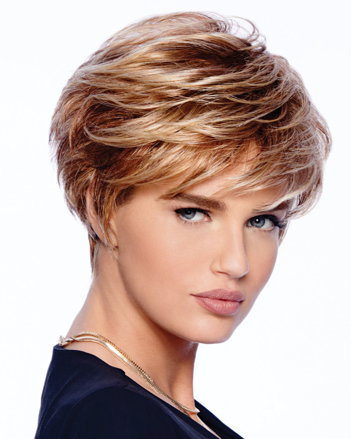 Sparkle by Raquel Welch. Ready to wear right out of the box, this short, face-framing cut includes a smooth front & top that blend into short textured layers throughout the back and sides. And it’s only two and a quarter ounces in weight!