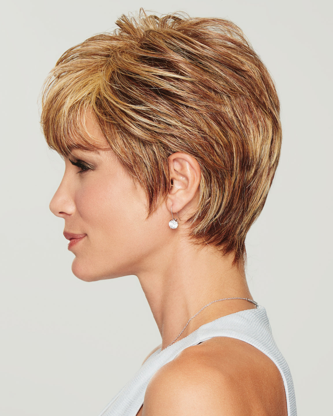 Generous length on the front and crown combine with all-over tapered layering to add a contemporary cadence to the traditional boy cut.