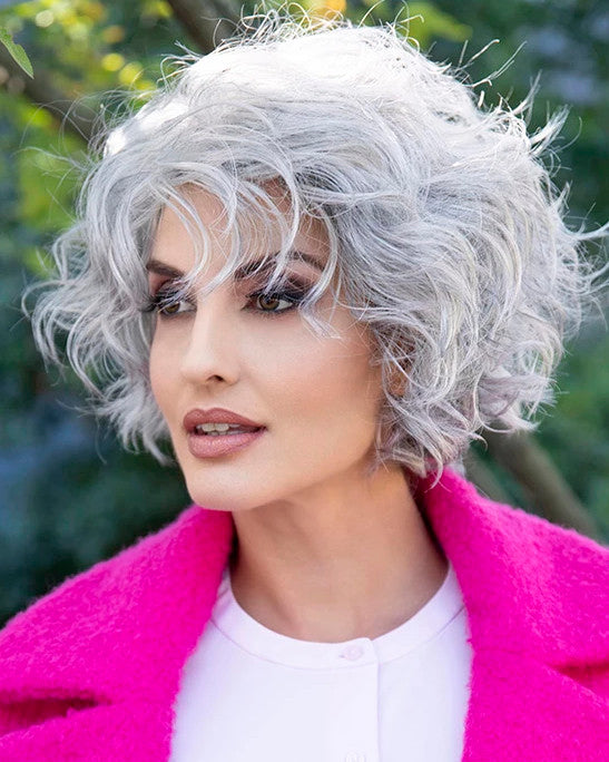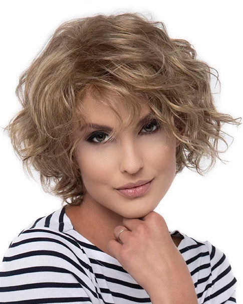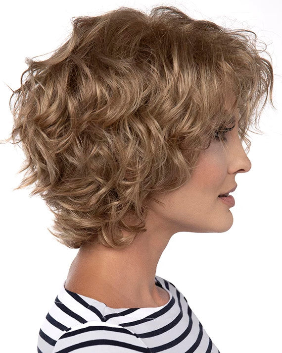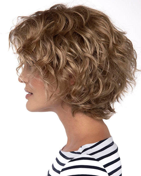 Suzi by Envy features piece-y bangs and face-framing layers that flatter nearly every face shape; and a breathable open top construction that makes wearing her a breeze! It’s the slightly stacked shape and perfectly messy texture that makes Suzi’s curl pop!
