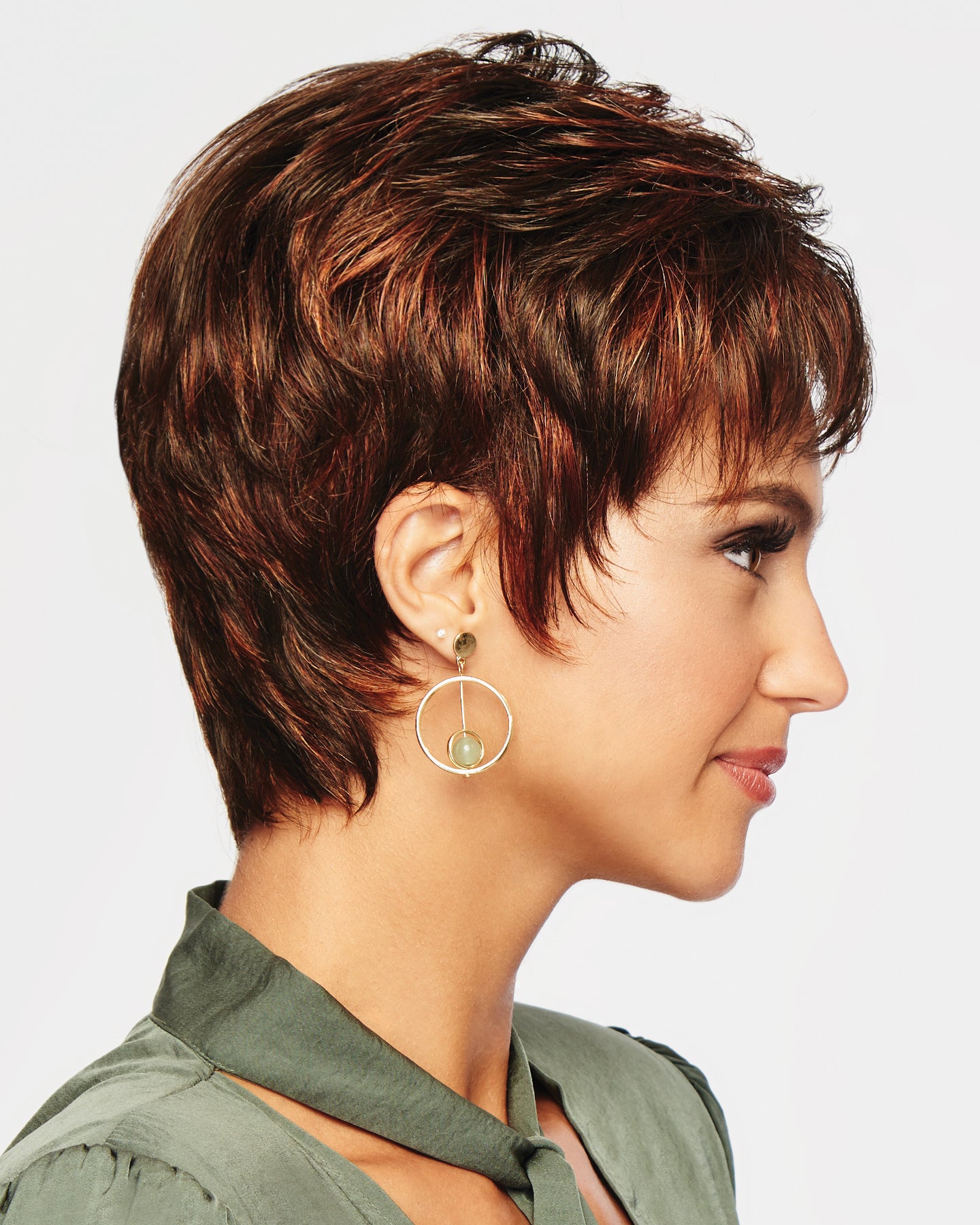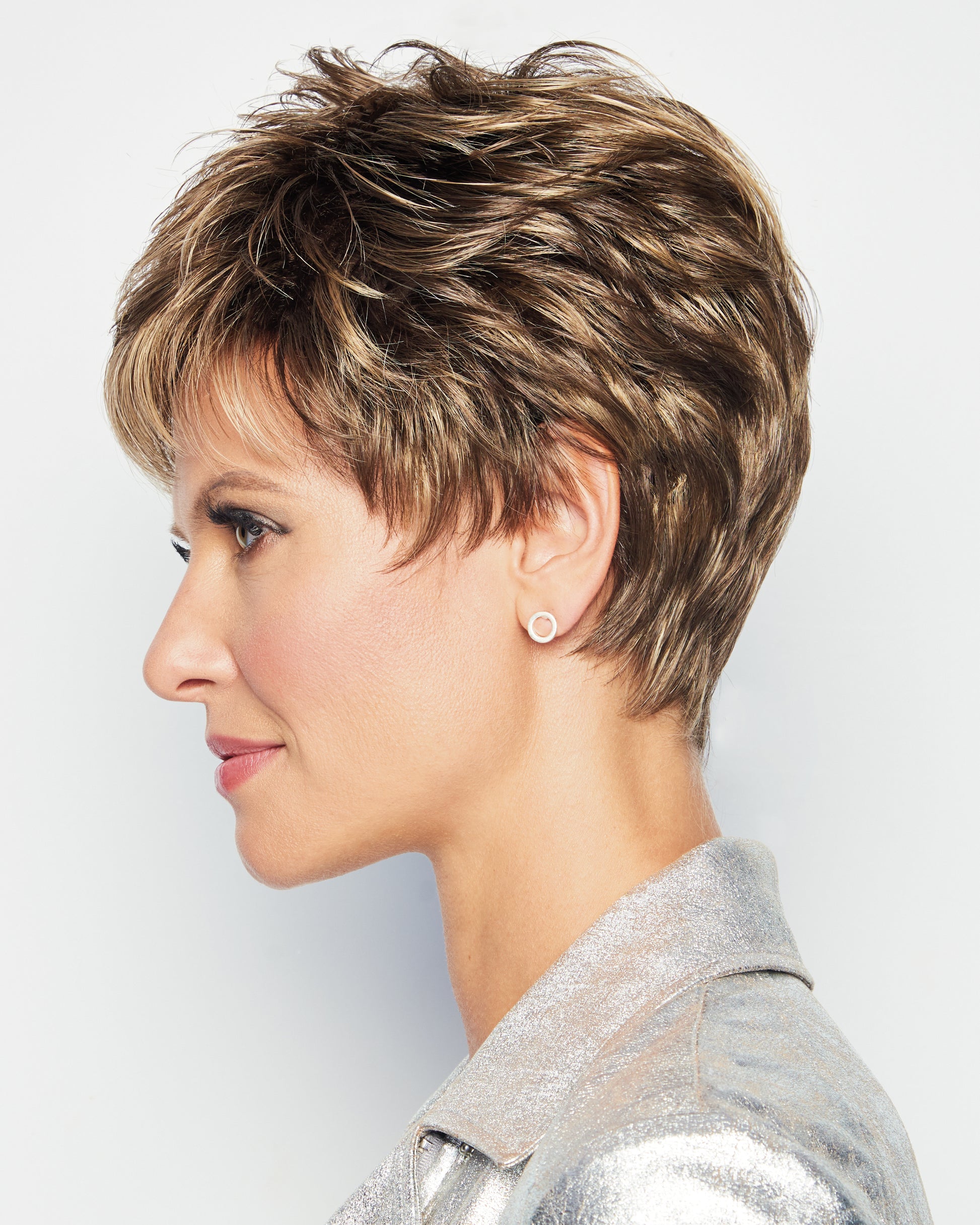 Winner by Raquel Welch. This light weight little pixie features razor-like tapering of barely waved layers. Ready to wear with a firm shake right out of the box, this short boy cut is as easy to style as it is comfortable to wear! Winner Raquel Welch Wig Pixie Boy Cut Vibralite
